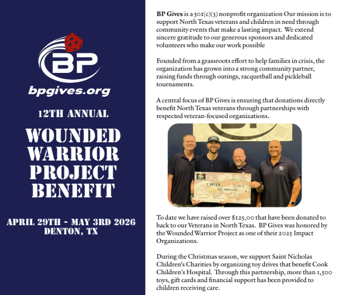 Thank you for your interest in supporting BP Gives, a dedicated 501(c)(3) registered charity committed to uplifting North Texas Veterans and children in need.